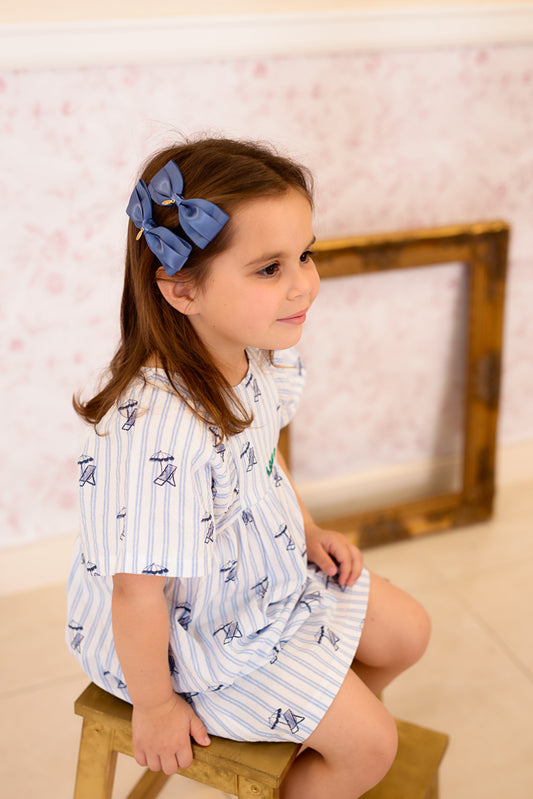 Madeline Small Bow Moonstitch Clip - French Blue