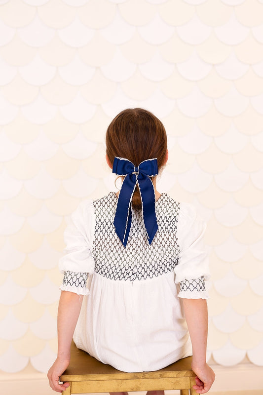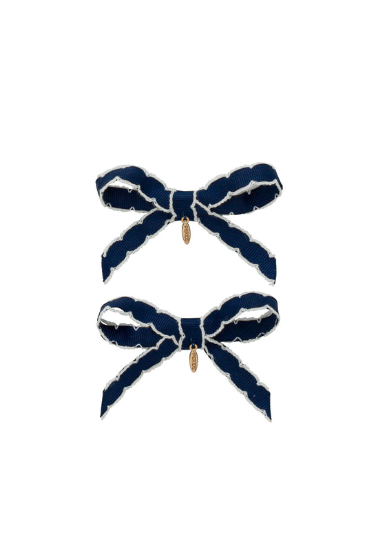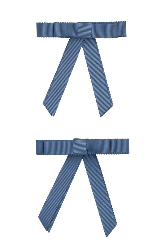 Madeline Petersham Long Tail Bow Clip - Smoke Blue