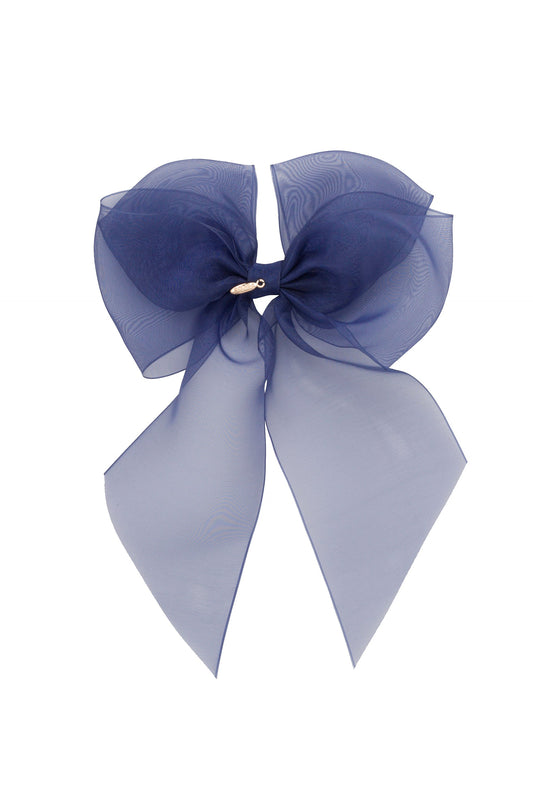 Oversized Organza Bow Clip - Navy (Handmade in the USA!)