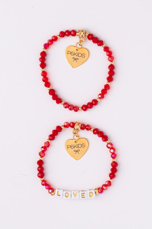 Power Mantra Bracelet Set - Red - "LOVED"