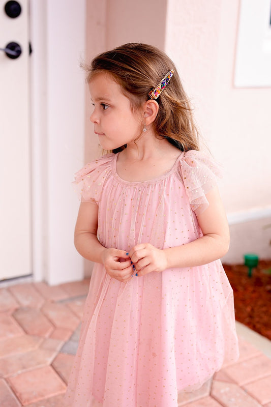 Dainty Fairy Beaded Bow - Pink