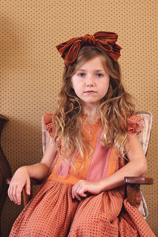 Pleated Ribbon Headband - Mustard Paisley Suede