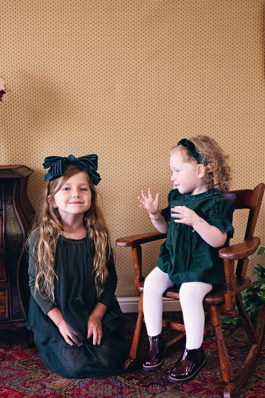 Pleated Ribbon Headband - Hunter Green Paisley Suede