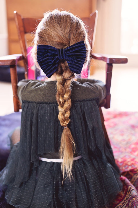 Beauty & The Beast Bowtie/Hair Clip - Navy Velvet Stripe
