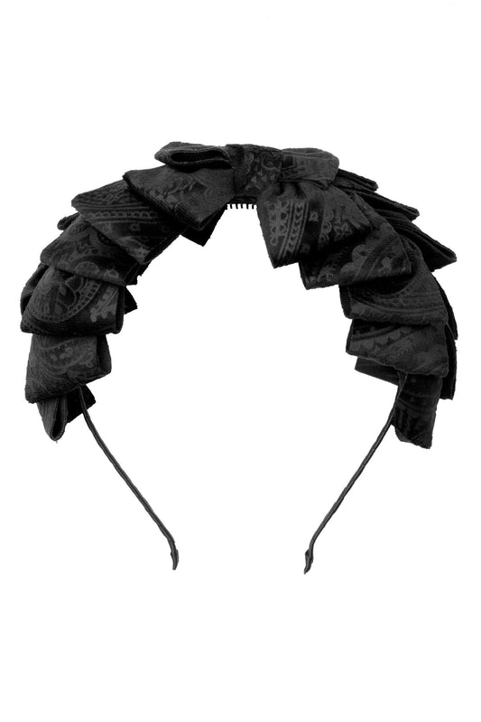 Pleated Ribbon Headband - Smoke Grey Paisley Suede