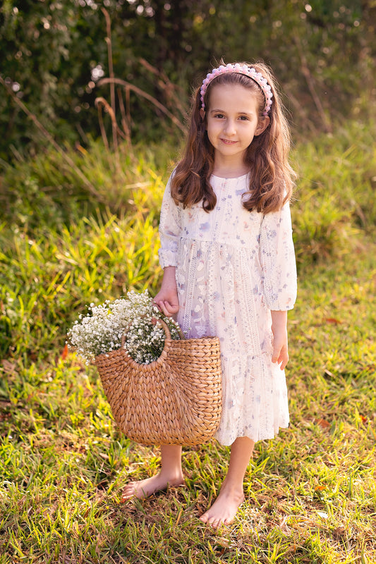Wide Knot Headband - Light Grey/ GreenPink Print