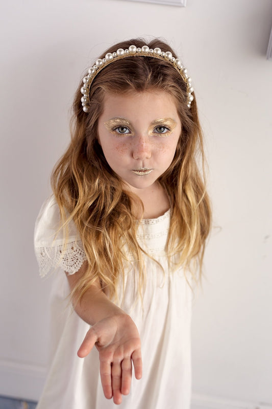 Uneven Pearls Headband - Gold/Ivory
