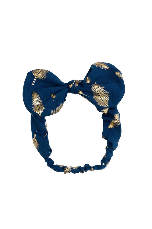 Bunnie Bow Headband - Navy/Gold Feather Print