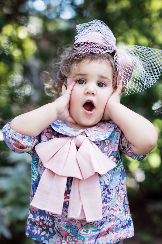 Pleated Ribbon Wrap - Blush Paisley Suede