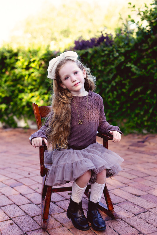 Knitted Bow Wrap - Purple Mauve