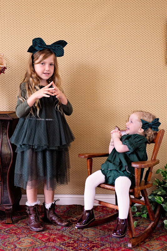 Growing Orchid Headband - Hunter Green Velvet Stripe
