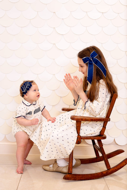 Embroidered Perfect Bow Clip - Navy