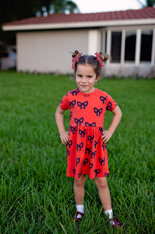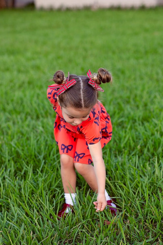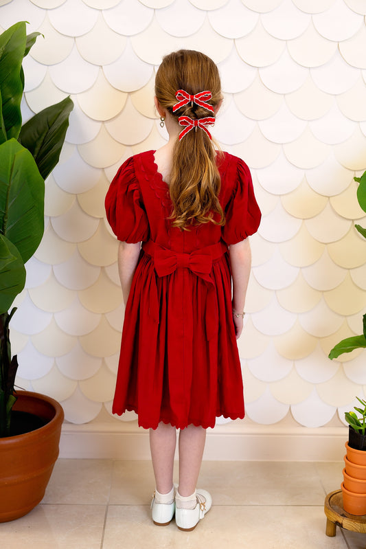 Madeline Small Bow Moonstitch Clip - Red