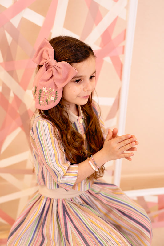 Embroidered Perfect Bow Clip - Pink