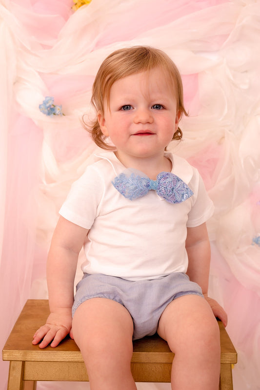 Ballroom Tapered Clip/Bowtie - Light Blue Organza