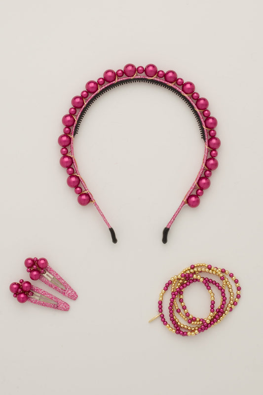 Uneven Pearls Headband - Cranberry