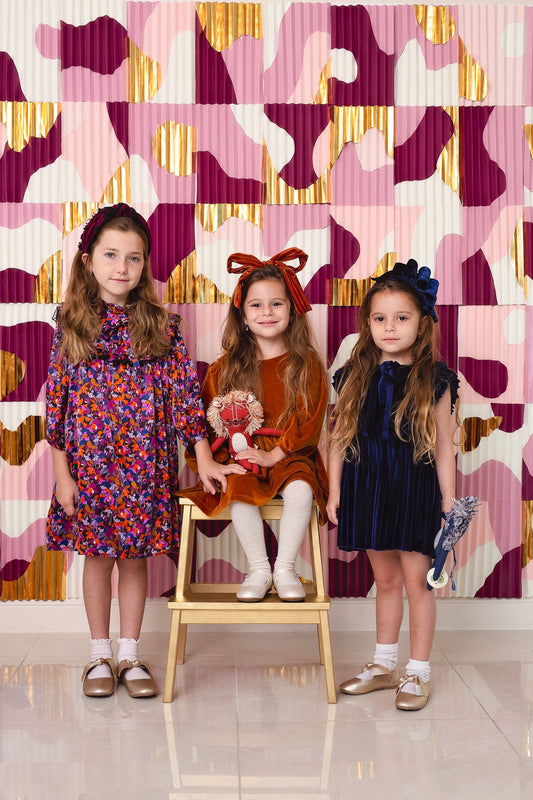 Velvet Pleated Butterfly Bow Clip Set - Golden (Handmade in the USA!)