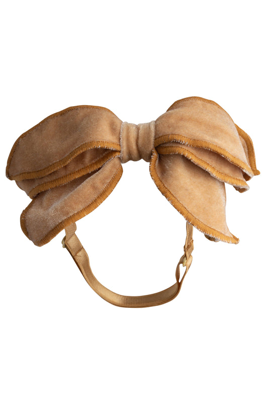 Madeline Velvet Long Tail Bow Clip - Golden (Handmade in the USA!)