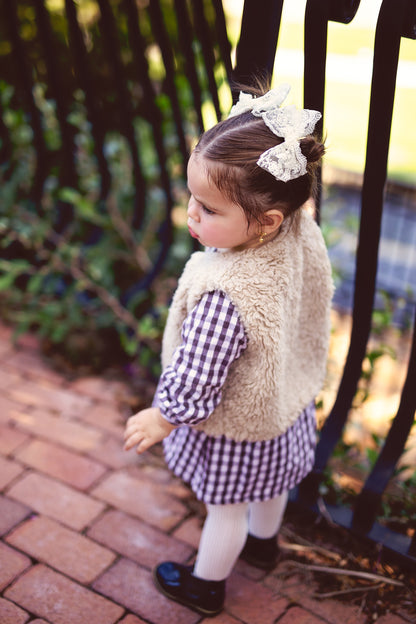When we found this stunning lace, I knew I wanted to make a mini staple go-to bow! This is it! Wear one or get two and wear them as a set!