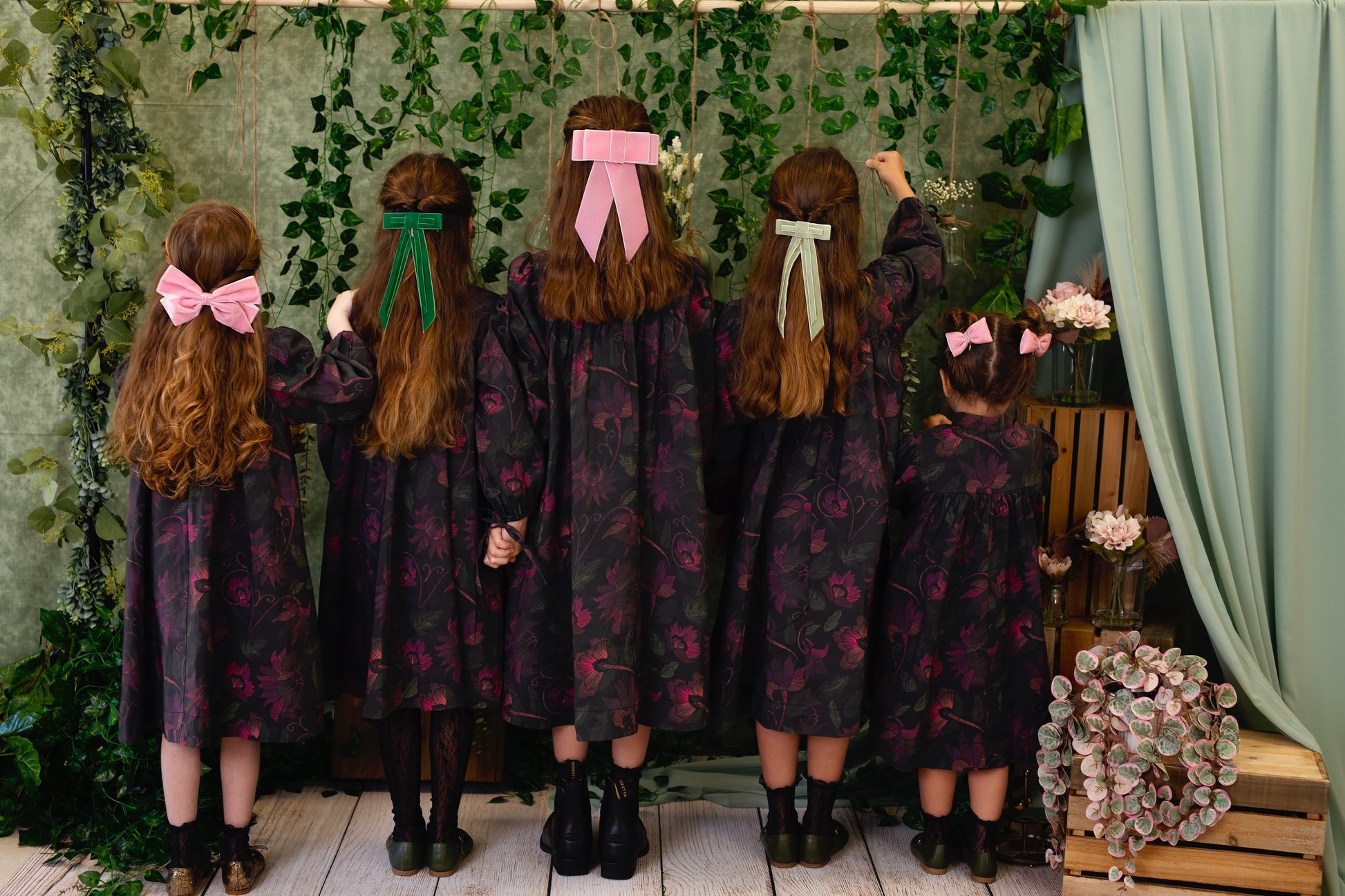 The Dahlia Velvet Clip blends elegance with ease -crafted from 2” velvet ribbon and shaped into soft, petal-like folds. Measuring about 7" wide by 4" tall, it makes a graceful statement while sitting comfortably on an alligator clip for fuss-free wear.