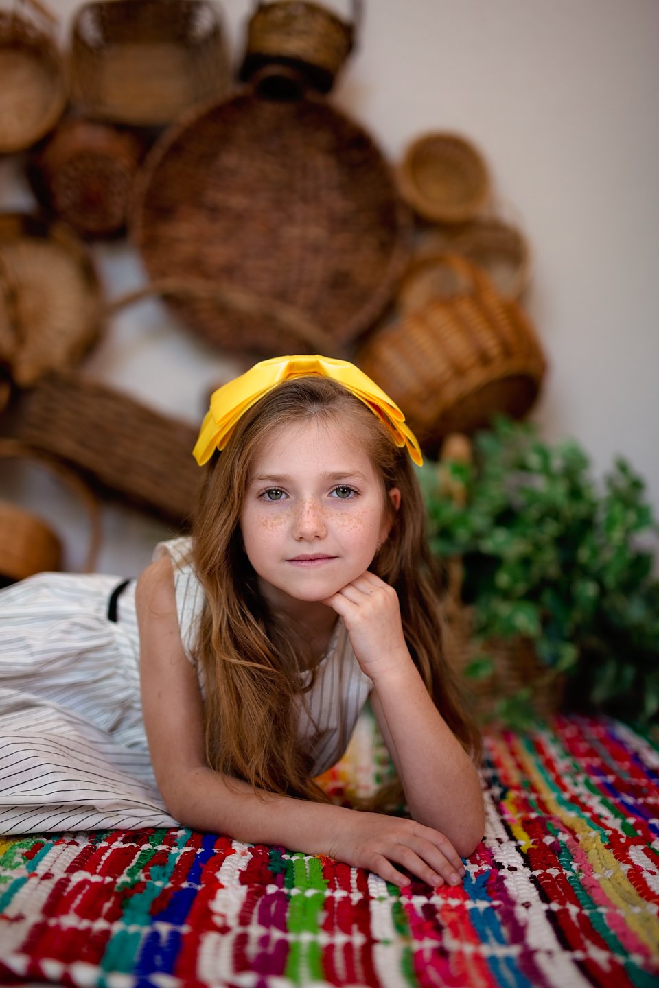 We love delicate flowers and wanted a style that could look soft in the hair for play or an occasion. We designed this style with fabric flowers and stones in the center. Great for flower girls, this style comes in a baby option as well!