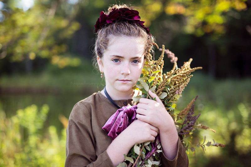 When we though of weddings, we needed a piece fit for royalty. How we would imagine a prince and princess at a wedding, and all the royal flower girls. We designed this flower crown to sit delicately on the head, and perfect any outfit. With many color options, we hope you can find a match! You can wear this flower wreath for any occasion or holiday! The partial wreath is good for smaller girls. The wreath has wire in it so you can wrap a bun or adjust the elastic.