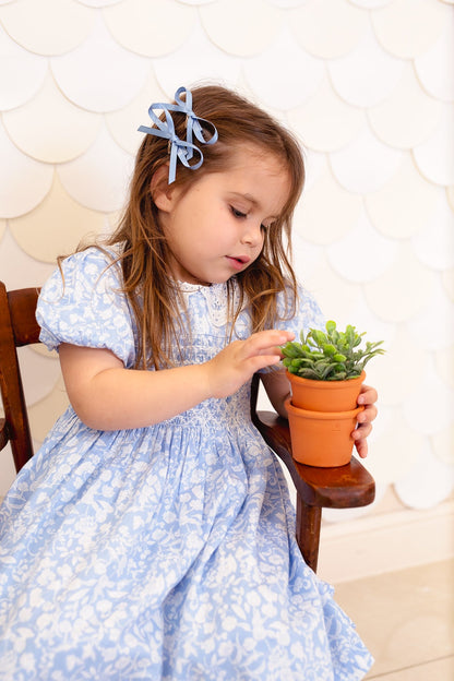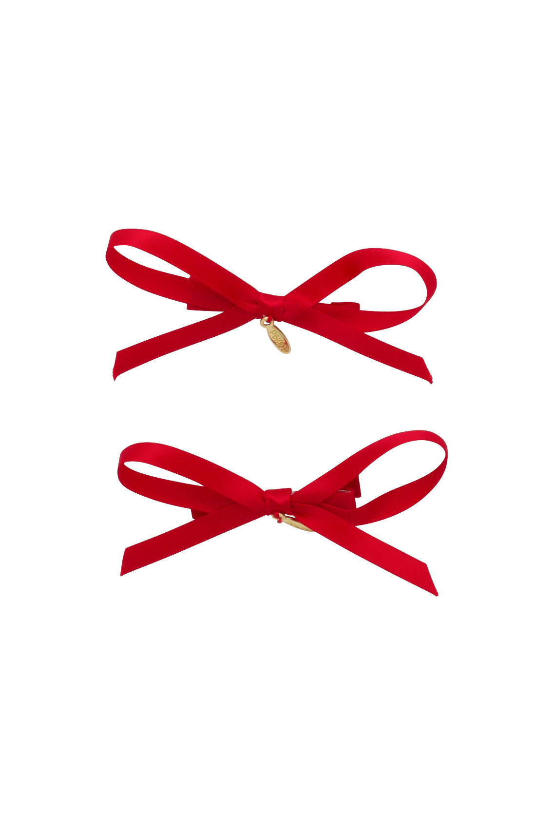 A set of dainty satin bows on a small alligator clip. Each clip is roughly 3.5" wide.