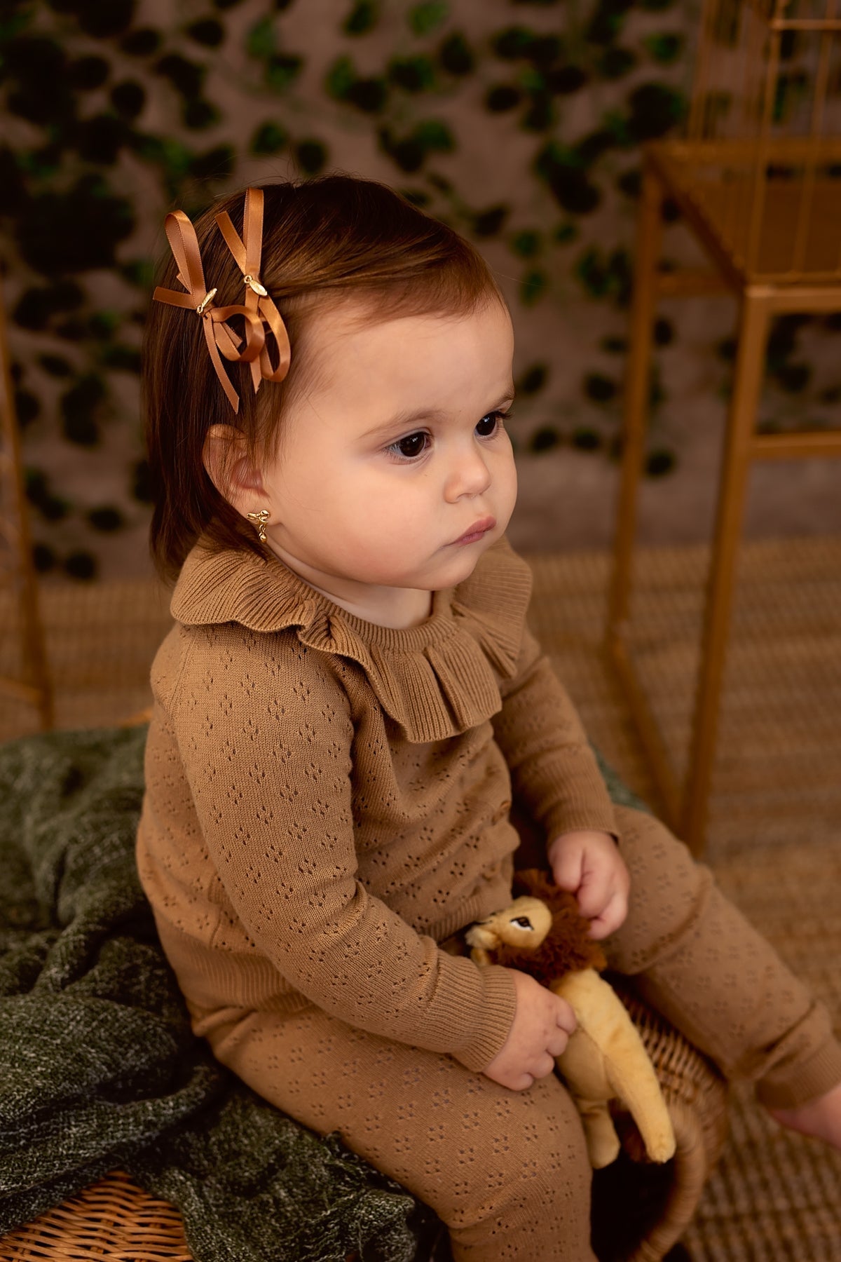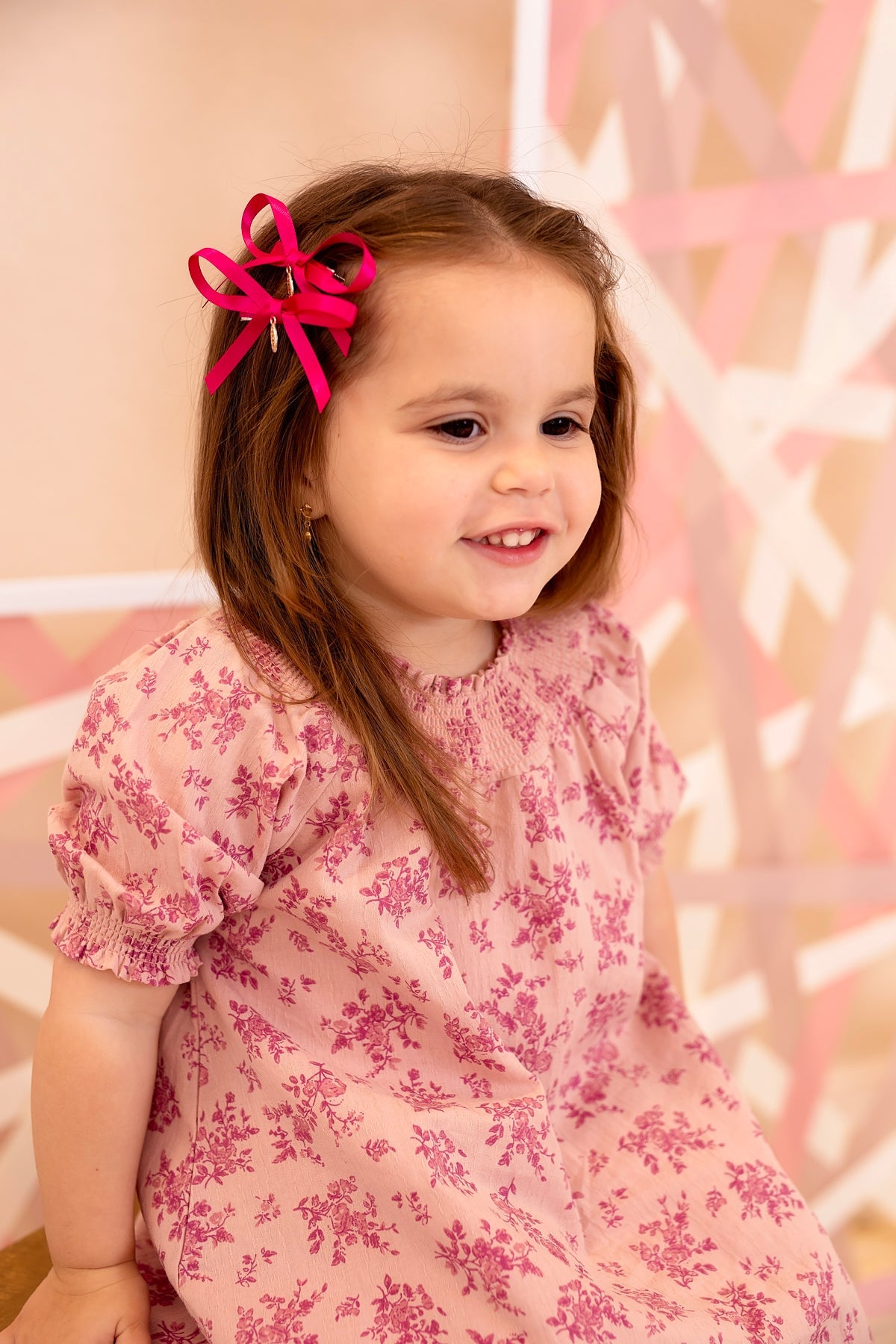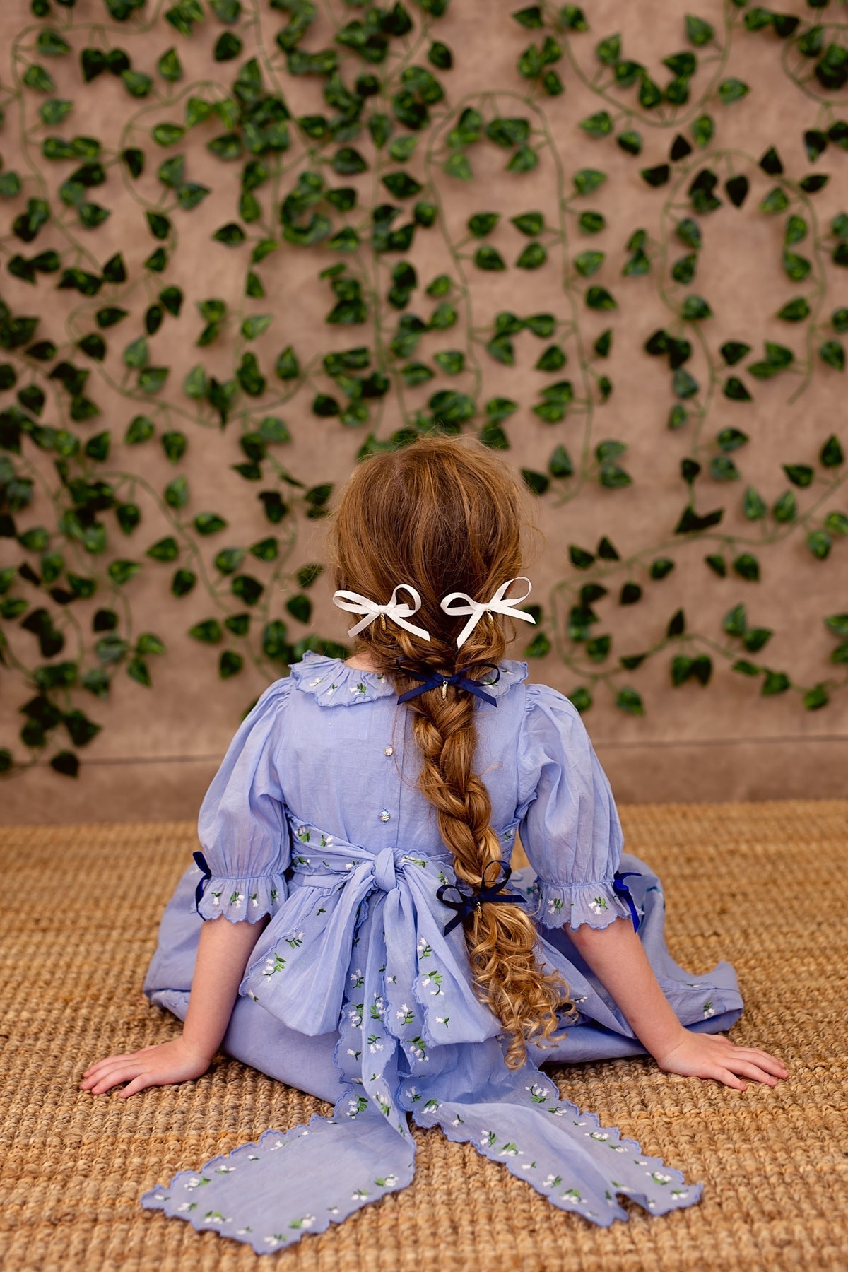 A set of dainty satin bows on a small alligator clip. Each clip is roughly 3.5" wide.
