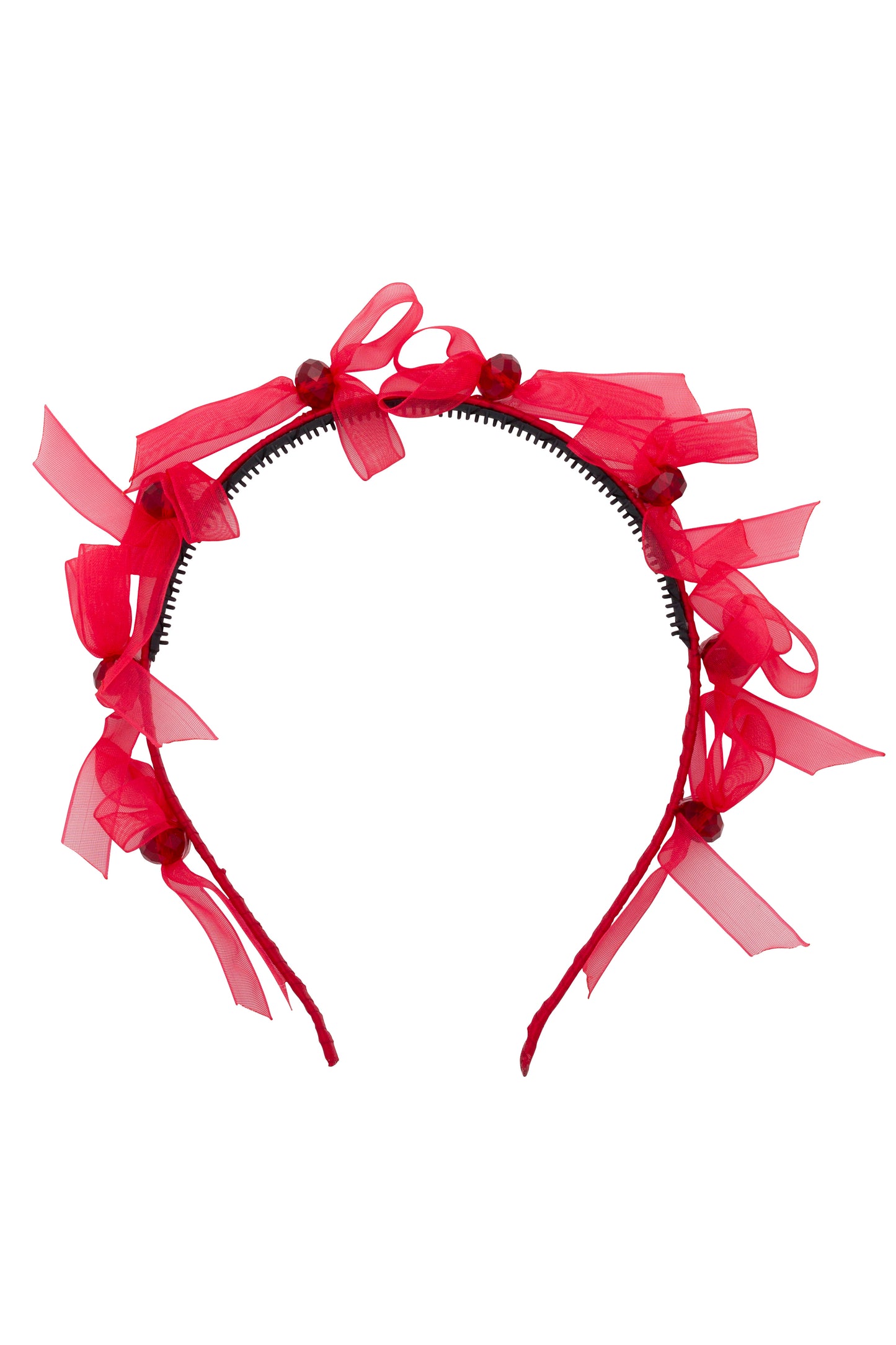 This design is created with several beads that have 2 loops of organza ribbon fed through it. This headband is reminiscent of ballet dancers. This style is handmade by artisans in Colombia.