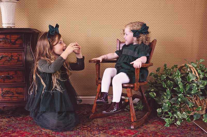 There are two main ways that we design: 1) Literally sitting around with fabric and wire and thread and scissors and lots more! 2) In front of a computer with photoshop! The Growing Orchid was born in photoshop last winter. You all loved it so much and when we found this Velvet Stripe fabric this season, we knew we had to remake this style. This fabric is insanely gorgeous and we so wish you could touch the fabric through your screen! This season, we added a clip to match this style so your little ones can match or if you're big ones want to change things up a bit, they have options!