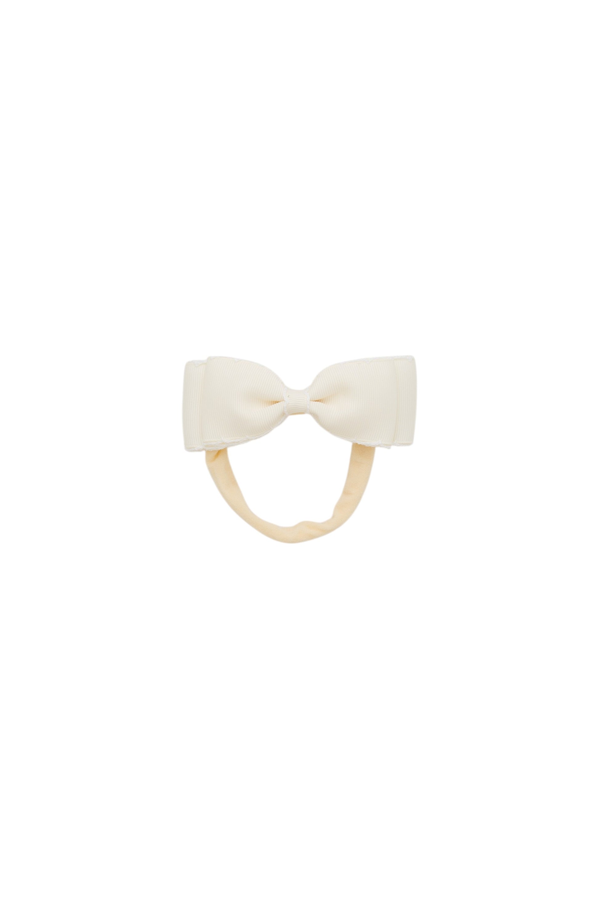 Our popular Heather style bow on a newborn nylon band. These are super stretchy!