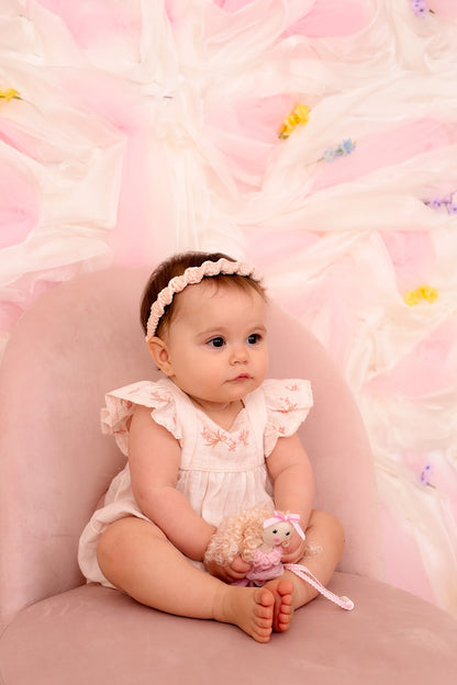 To say we spent a lot of time sourcing the right threads for this style would be an understatement! In the end, we settled on two different threads and choose colors from both of them. We sourced the threads in Mexico and Brazil. Then, we had each of these macrame styles handmade by women in Colombia. The Helix styles come in a hard headband and also a baby adjustable wrap. Our wraps can fit baby all the way to adult, though! The baby model pictured is 10 months old.