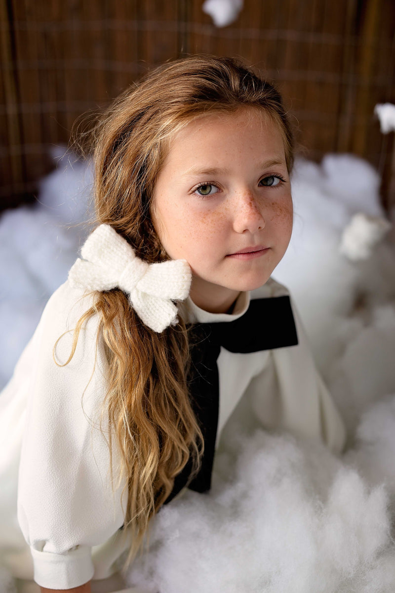 We started adding more clips to our collections about 2 years ago and wow! You all really loved them- thanks for all the feedback, by the way! While staying-at-home, I picked up my knitting needles again and have become obsessed with all things knit. I tried a few variations of bows and this dainty one was the winner! We have a proper knitter in Colombia who is knitting these bows with lots of love!