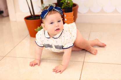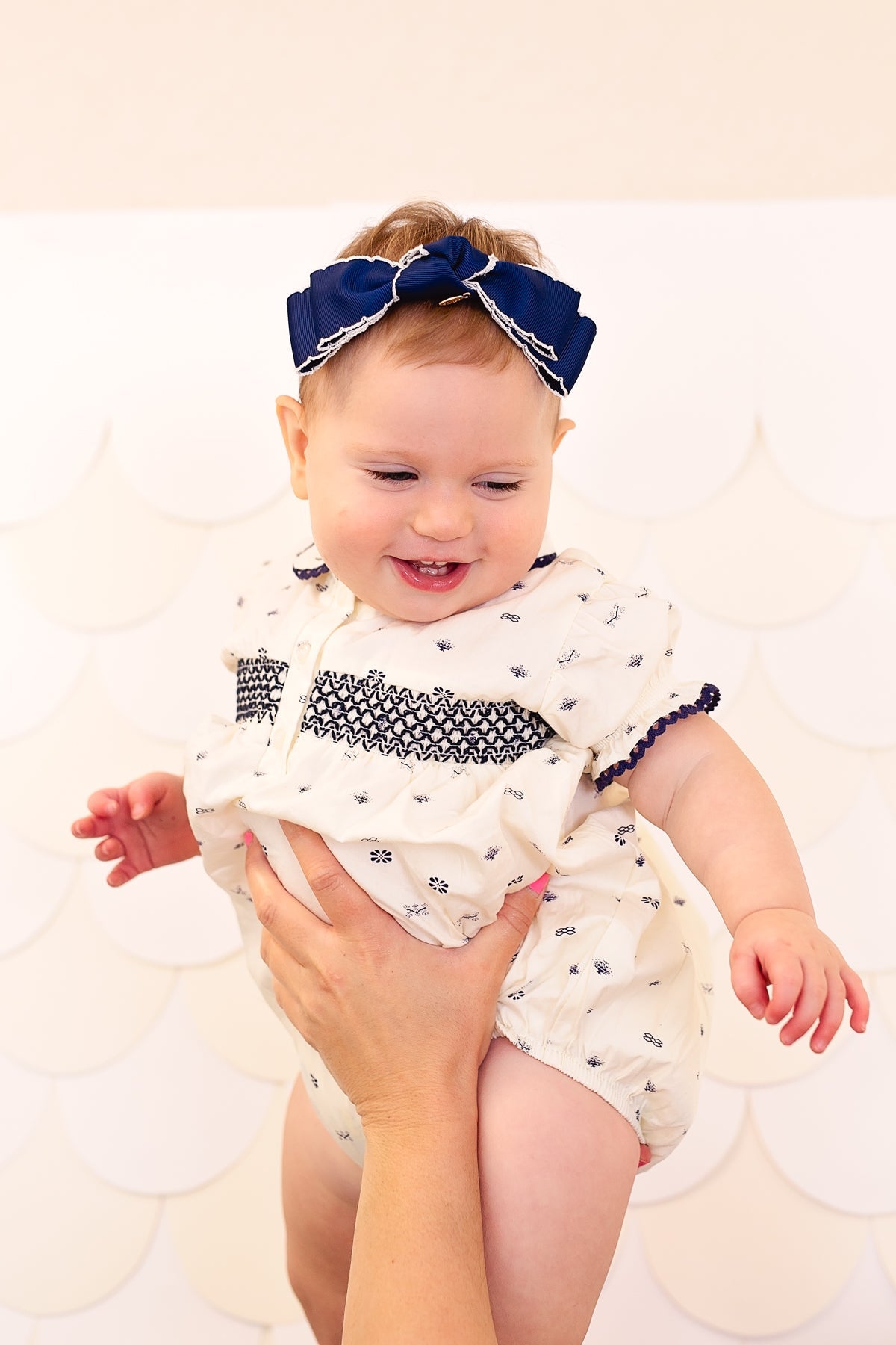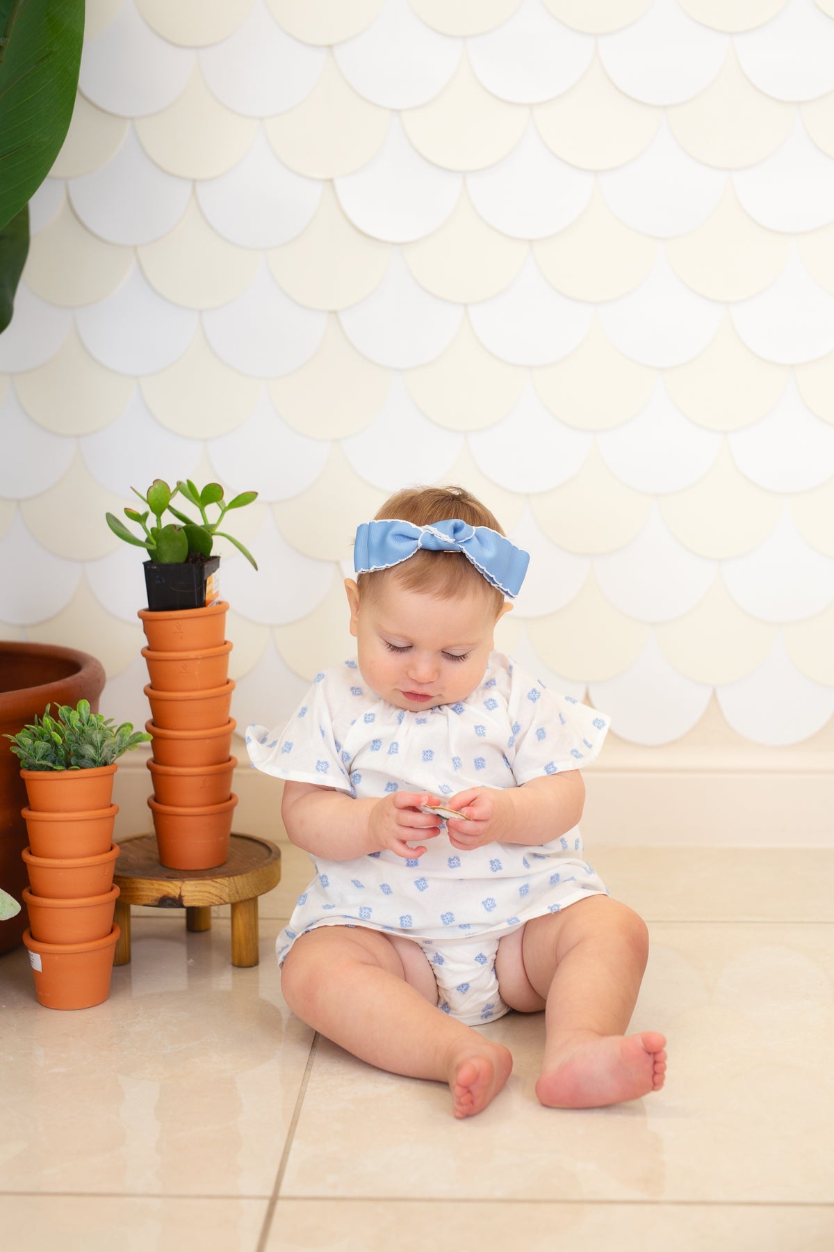 A baby/toddlery-friendly version of our Knotted Heather Headband, this sweet wrap features two layers of our new grosgrain ribbon with delicate moon-stitched edging to form a bow with a knot as its center. The gentle knot detail adds just the right touch of charm, while the adjustable band ensures a comfortable fit for babies and toddlers.