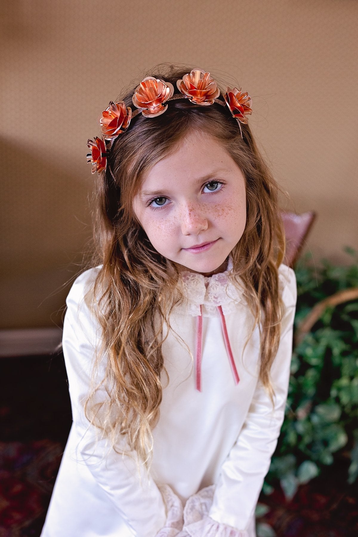 Think of that lonely rose in Beauty and the Beast. That's the story behind this headband! There is beauty in numbers...think of a garden full of flowers or our Triple Rose Headband, but there's also something beautiful about a single rose standing alone. Hence this headband of 5 roses standing spaced apart...alone. This headband looks even better when it's on!