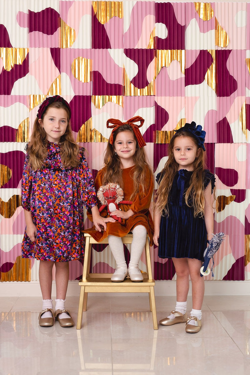 This stunner took a while to perfect. There is wire in between the layers of fabrics that form the loops, so the loops can be flattened or opened.