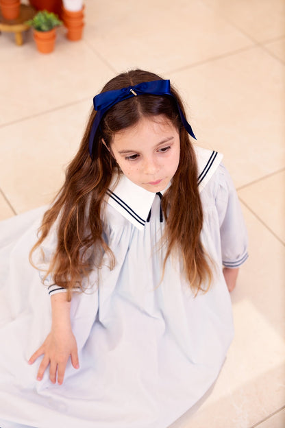 As a child, I adored the movie Matilda—especially her signature ribbon bow. While the look is timeless, tying a perfect ribbon that stays in place is nearly impossible on little ones. So, we created the Matilda Headband and matching baby wrap to capture that effortless charm in a design that’s secure, comfortable, and beautifully finished. It gives the illusion of a tied ribbon, without the fuss—just classic, storybook elegance that stays in place. With its soft satin and delicate bow, it carries a vintage nostalgia, reminiscent of cherished childhood moments and heirloom accessories. ✨