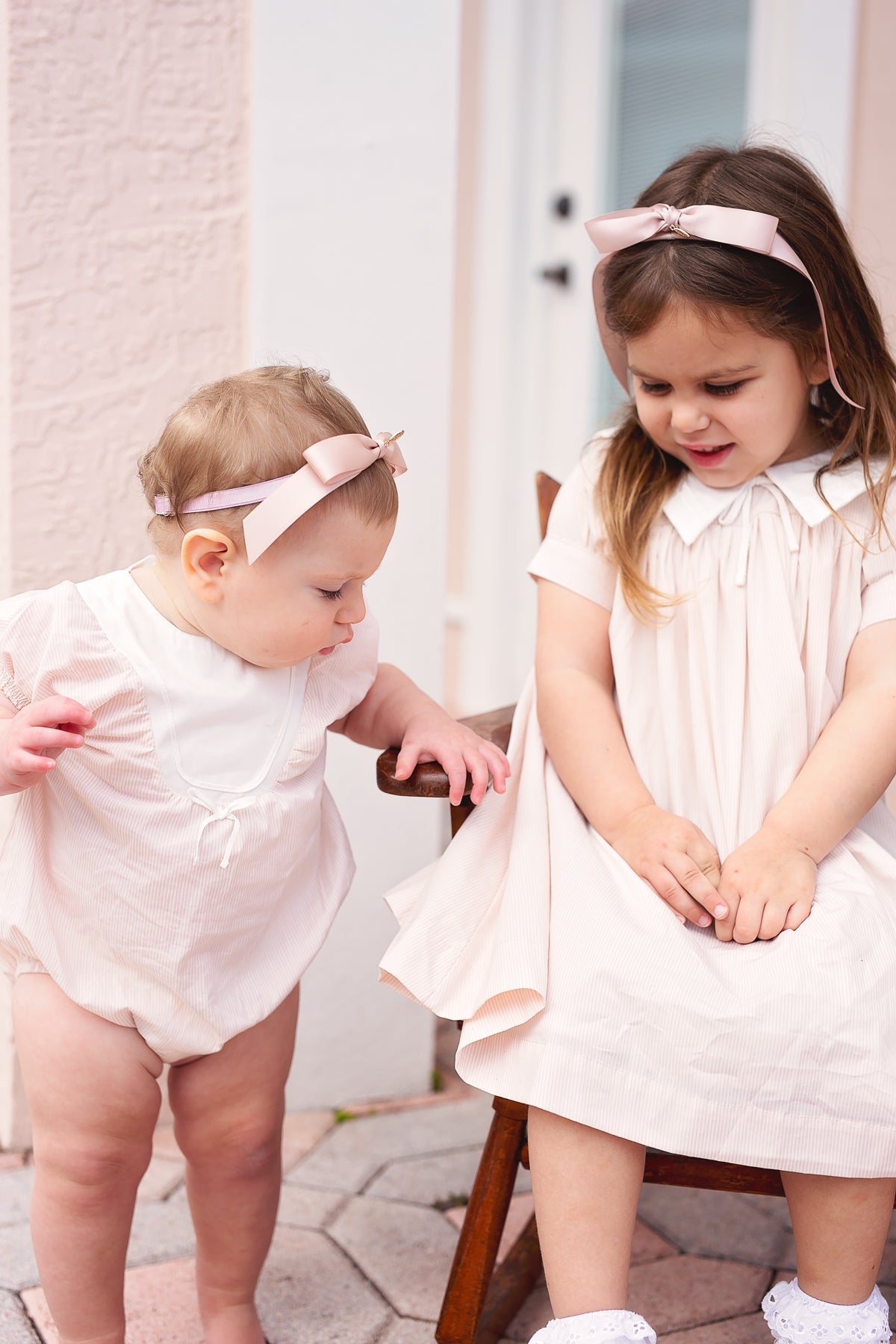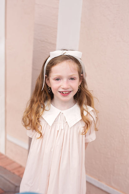 As a child, I adored the movie Matilda—especially her signature ribbon bow. While the look is timeless, tying a perfect ribbon that stays in place is nearly impossible on little ones. So, we created the Matilda Headband and matching baby wrap to capture that effortless charm in a design that’s secure, comfortable, and beautifully finished. It gives the illusion of a tied ribbon, without the fuss—just classic, storybook elegance that stays in place. With its soft satin and delicate bow, it carries a vintage nostalgia, reminiscent of cherished childhood moments and heirloom accessories. ✨