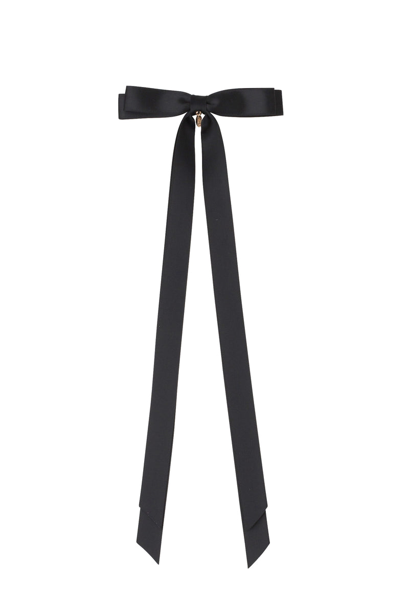 Matilda Satin Long Tail Bow Clip - Black
