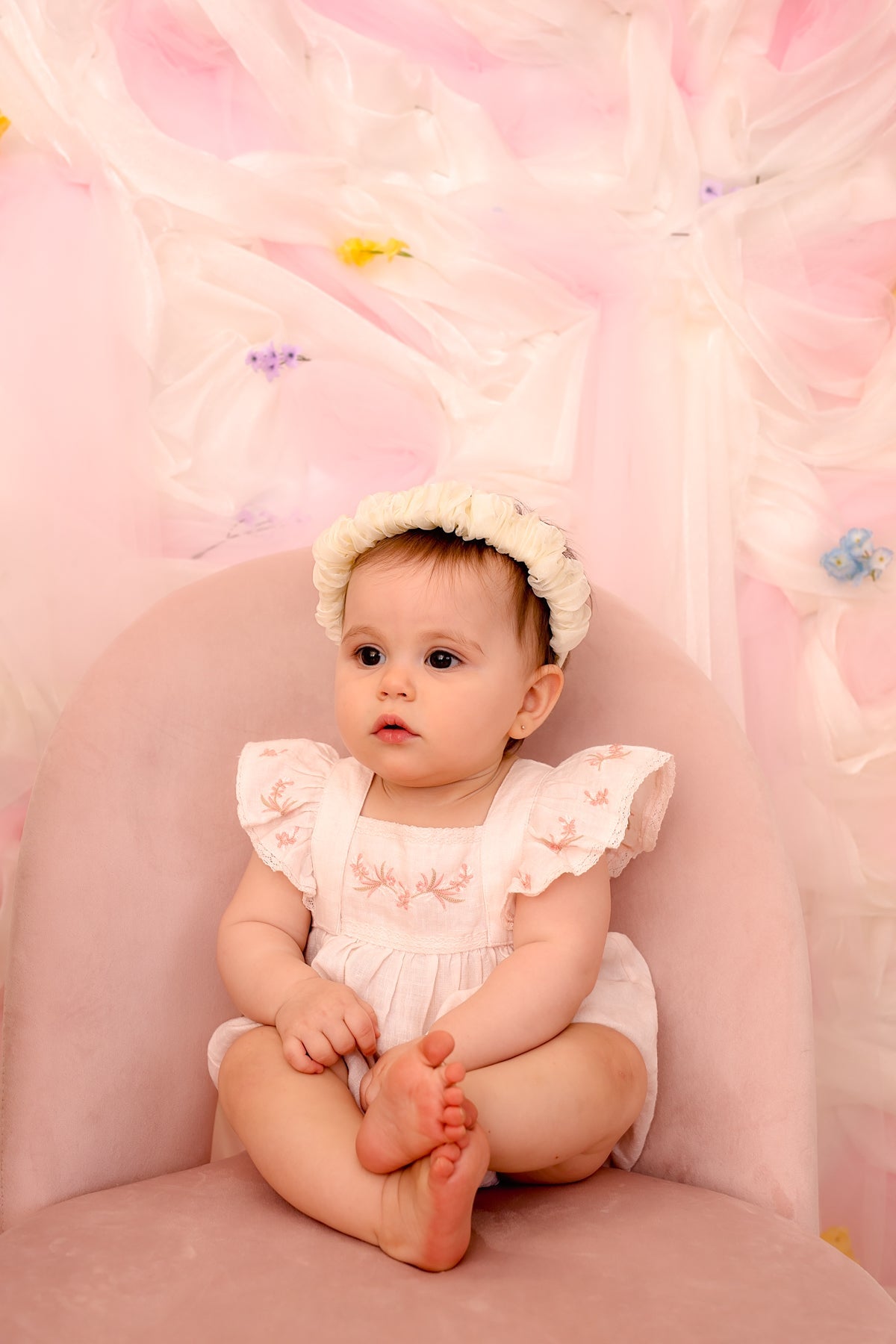 We had to make a matching style to our organza bunches headband. I was worried it would be too big for baby, but oh my goodness, look how adorable it looks on this 10-month-old baby!!!