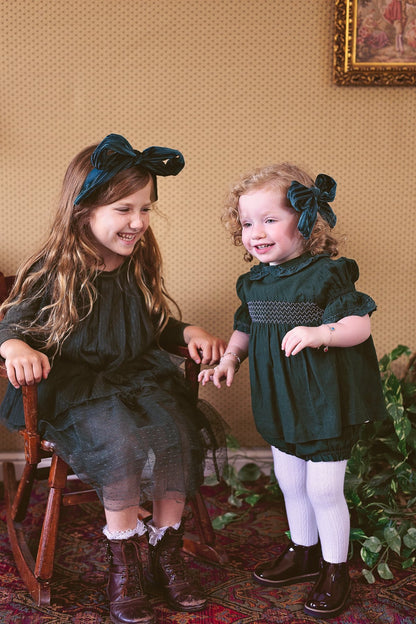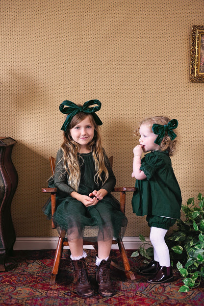 A classic style for us, we remake it for you again and again in new fabrics and colors. This season, we used our new velvet stripe fabric. It adds so much to this style! AND, new for this season, we designed a small matching ADORABLE clip!