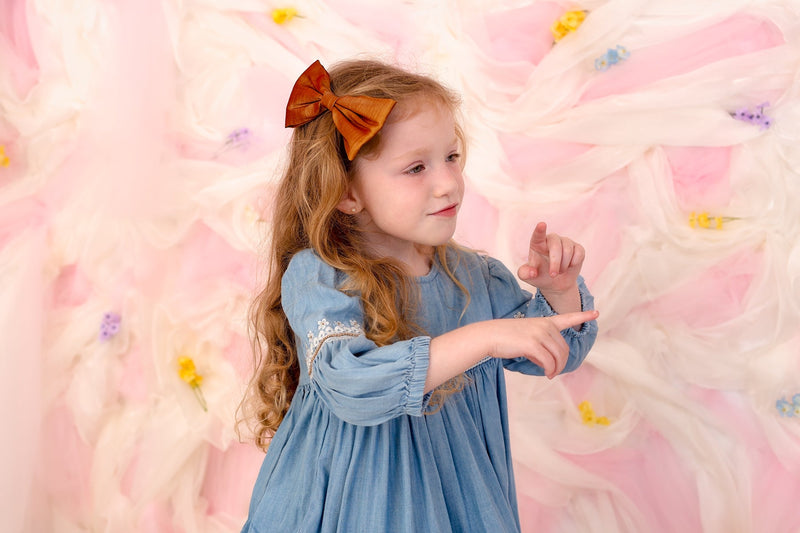 So this style matches our Perfect Bow Clip. After customizing that style to be without the "legs" so it can be used on a toddler with little hair or as a bowtie for some of our customers, I knew I had to add it to our collection as a permanent style. Will you wear it as a hair bow or as a bowtie? Size: About 5" wide.