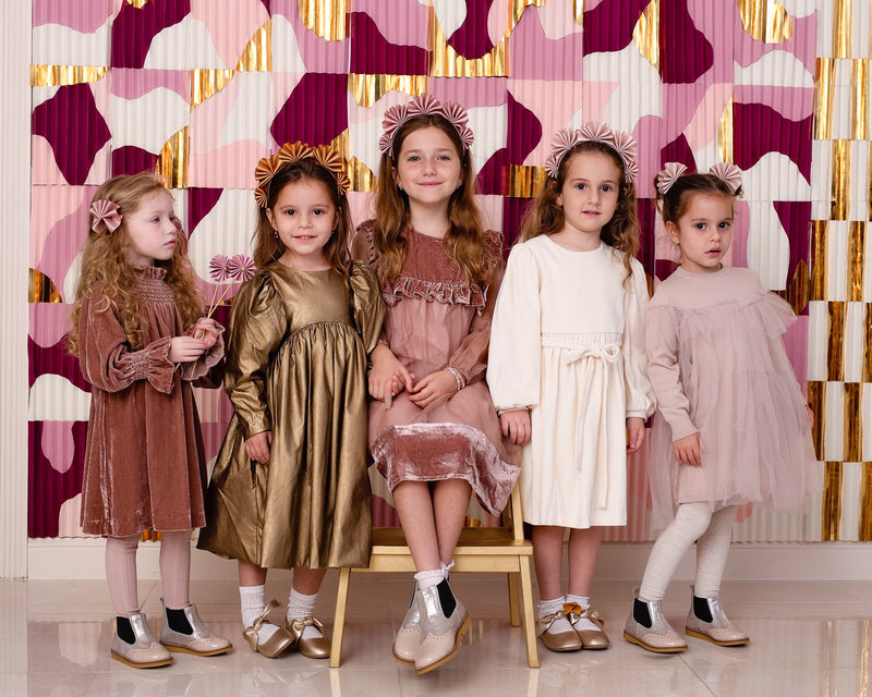 I've been playing around a lot with pleating and the different ways to ruffle fabric. So I picked up some satin ribbon and started folding. I had no vision in mind, I was really just playing. And then boom, somehow a couple styles popped out! I was obsessed and based our entire photoshoot backdrop off of it! This clip is similar to our accordion clip, but lays differently in the hair. (Note the placement of the clip is on the back. I love the way it looks over a ponytail)