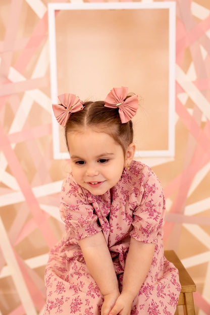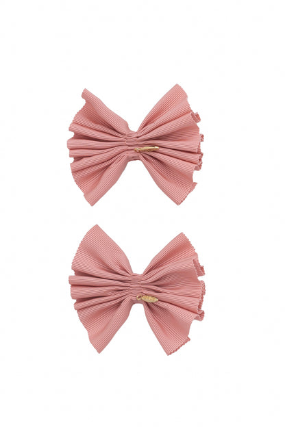 This is the clip style to match our Pleated Palm collection. These are great as piggy clips or you can wear them individually as a bow in the side of your hair, above a pony, over a little half pony, or however you'd like!
