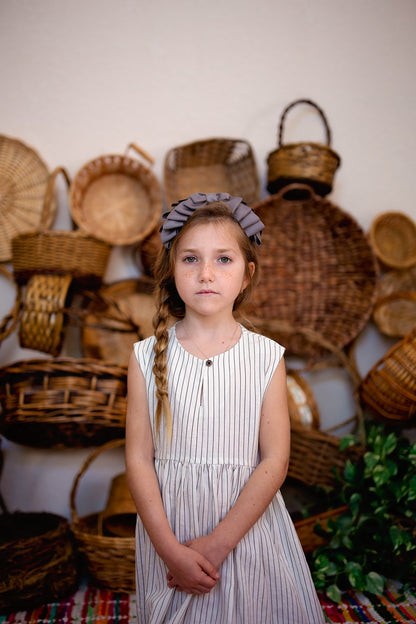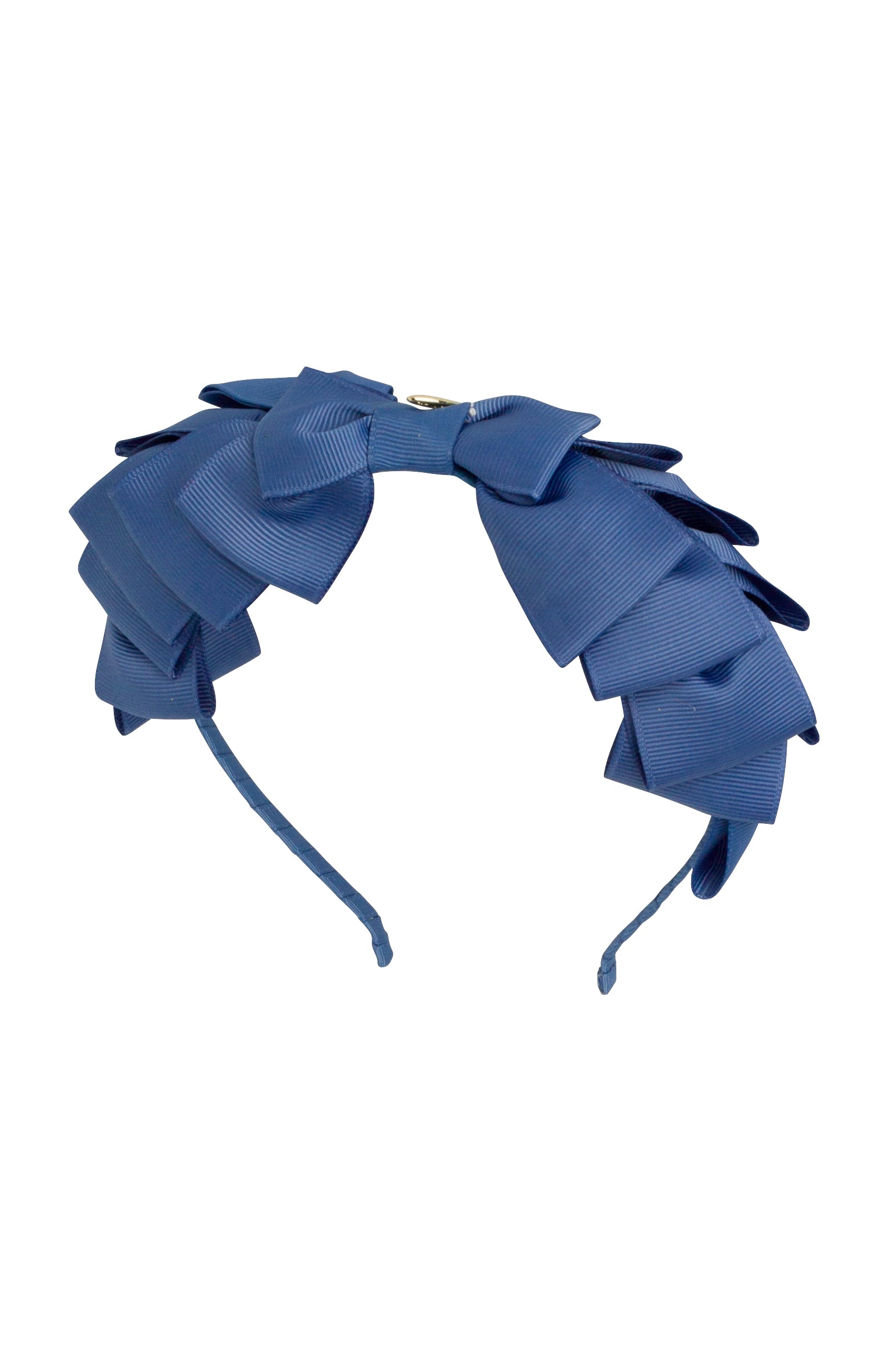Pleated Ribbon Grosgrain Headband - Smoke Blue