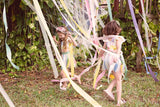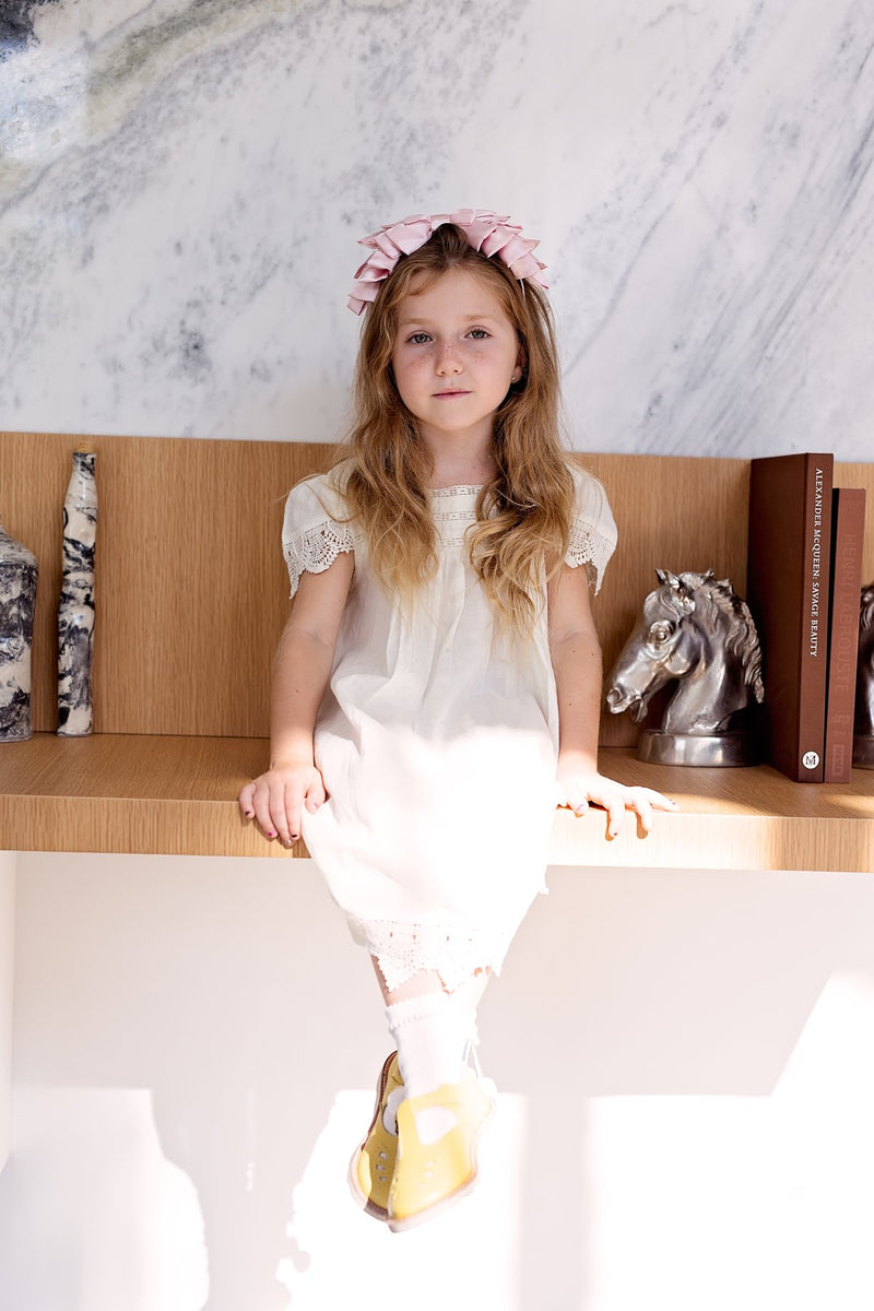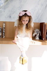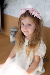 Layers of satin folded and sewn to create a cascading pleated look on a hard headband