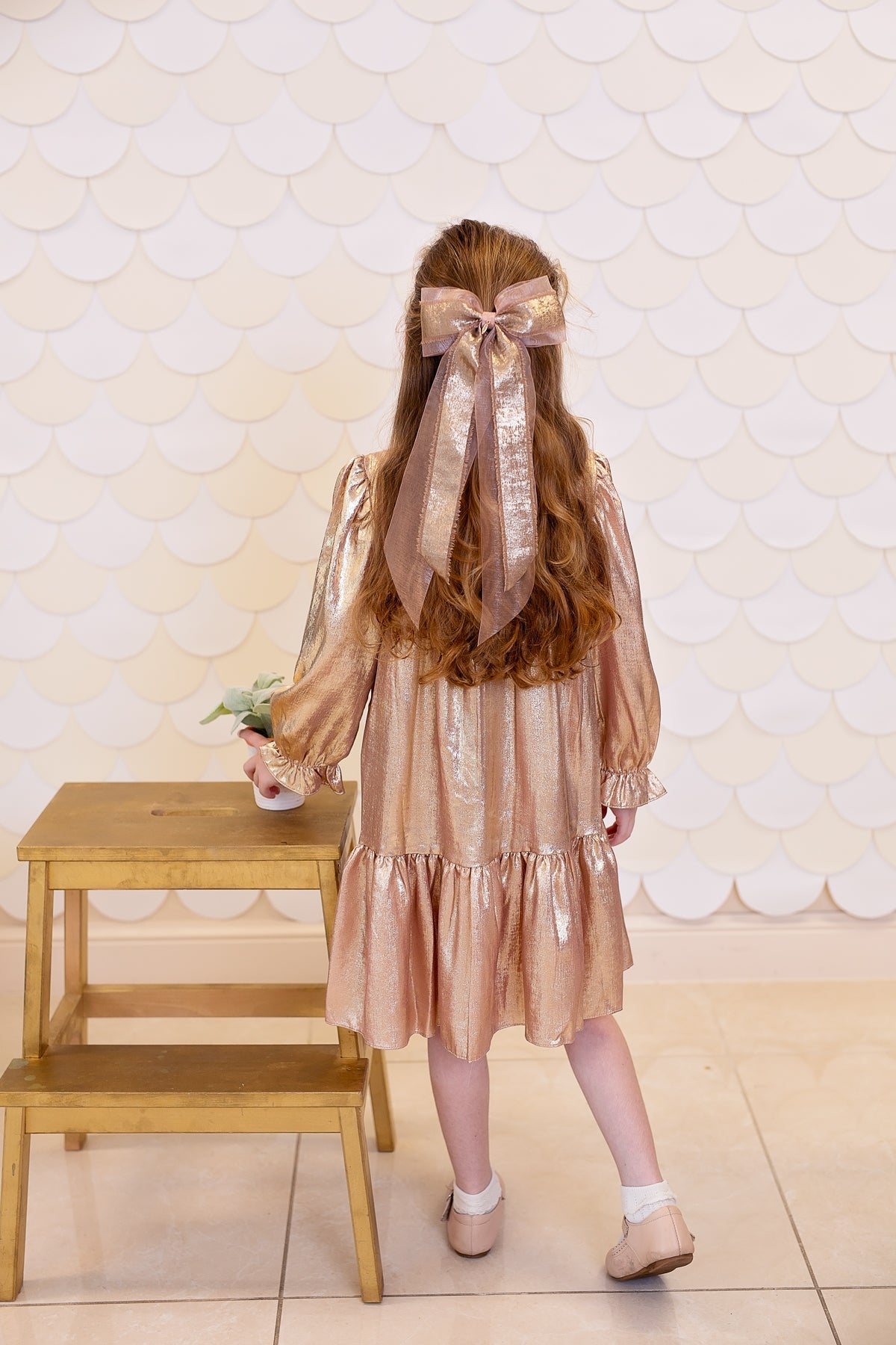 Primrose Princess Long Tail Bow Clip - Sweet Nectar/Metallic