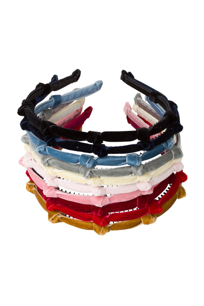 I absolutely love the simplicity of this design. It's little rosebud knots on a thin narrow headband. Wear one at a time or stack them! We had such a hard time choosing colors for this style because we wanted to make it in like 20 colors! We narrowed it down to 10 colors that we felt would go best with all your girl's clothing! See a color that's missing? Email us and make a request! When we get enough requests, we sometimes do a custom color mid-season!