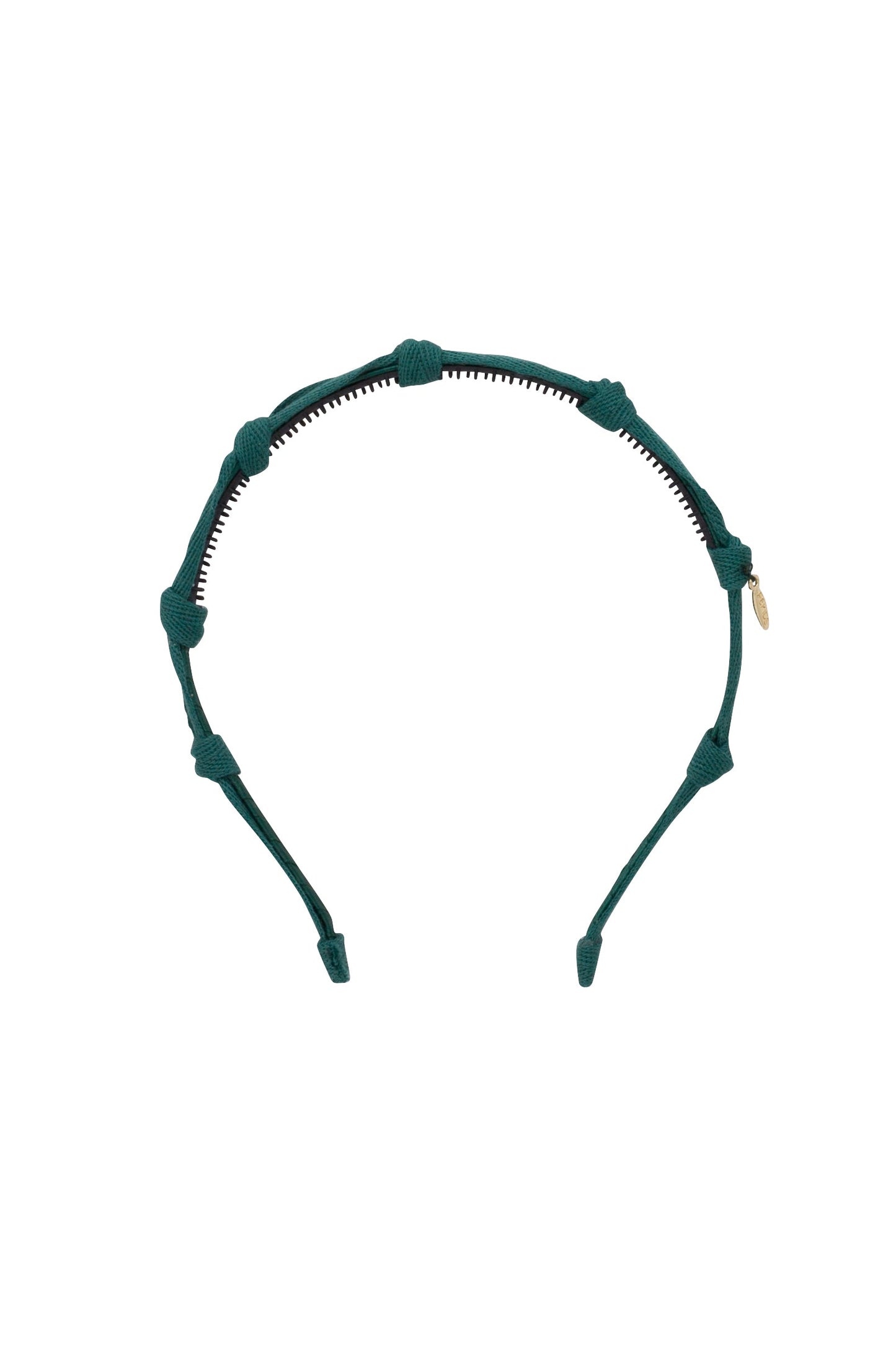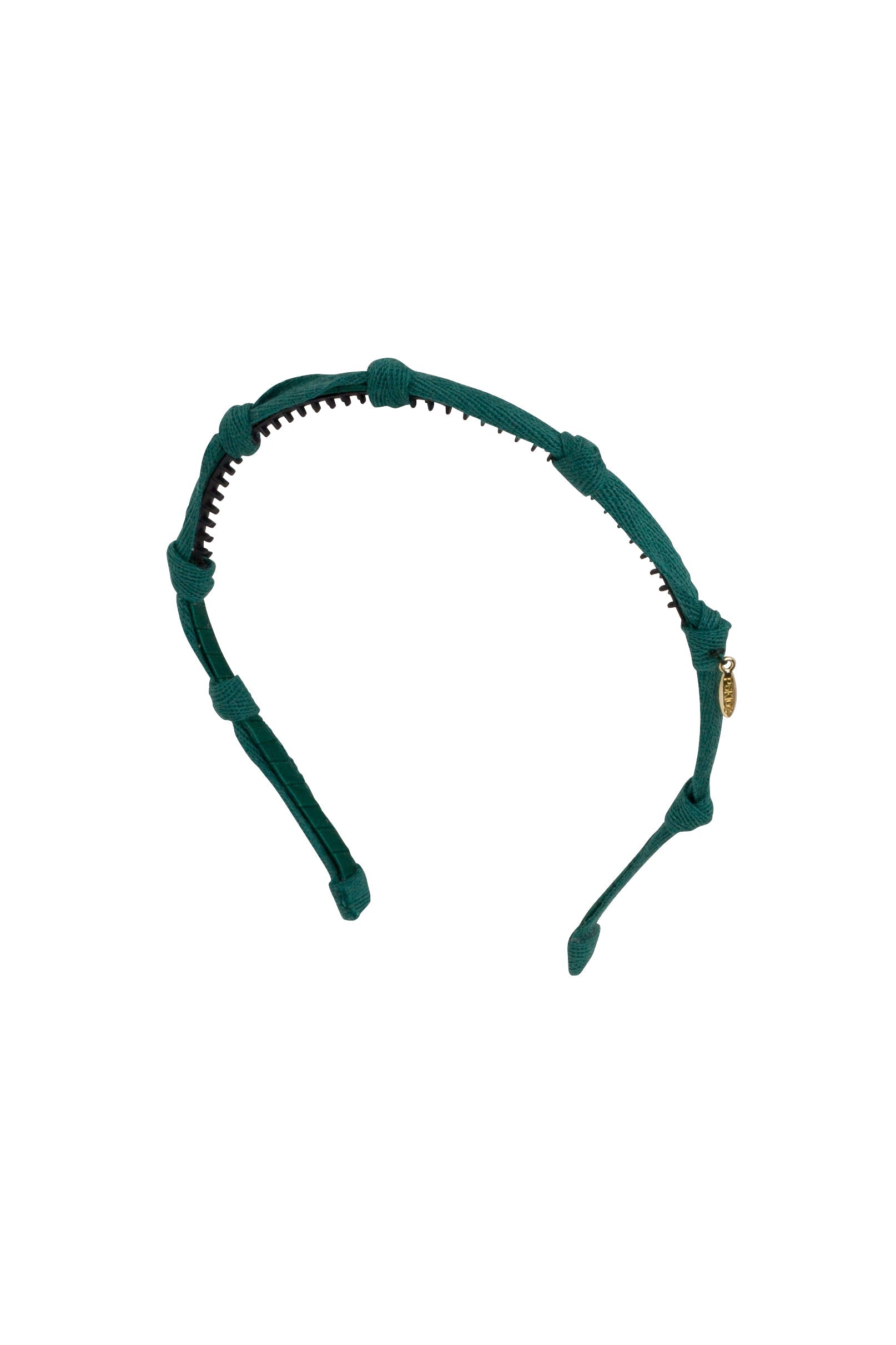 I absolutely love the simplicity of this design. It's little rosebud knots on a thin narrow headband. Wear one at a time or stack them! We have them now in velvet and this cotton herringbone fabric. Such a great staple!