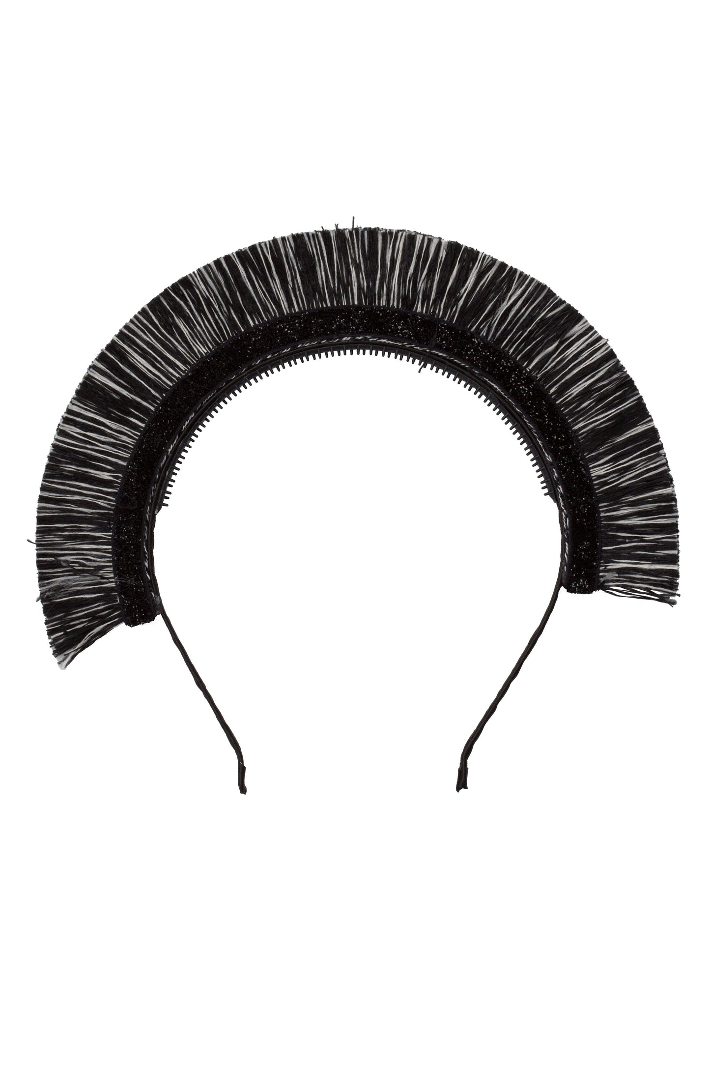 Static Fringe Headband - Black & White Fringe/Black Glitter